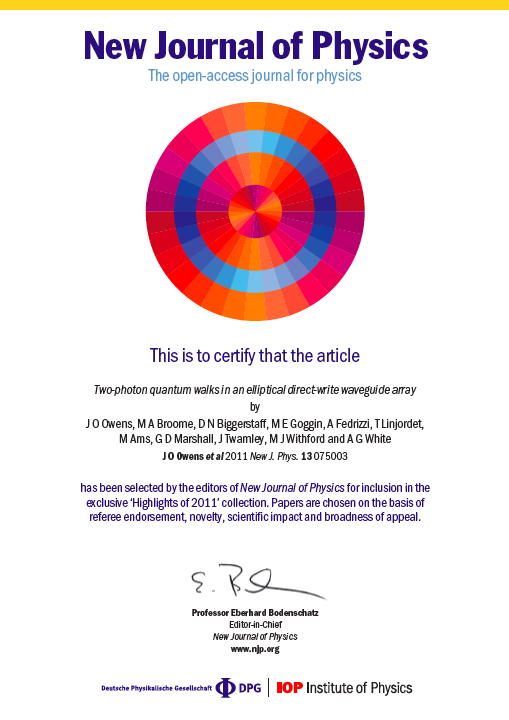 - 28/08/2022: It has been our privilege to work with Dr Till Weinhold for most of the last two decades. Joining us as a PhD student, then rejoining us after a few-year stint ion-trapping, Till has initiated and led some of our most challenging and exciting projects, working with colleagues around the world. So it is with heavy hearts—but excitement for his new position—that we wish Till the very best of luck as he joins Defence Science and Technology. It has been a delight and an honour Till, and we hope to get to work with you again soon!