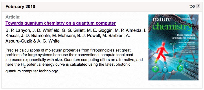 - 19/12/2007: Happy Eid ul-Adha! Our paper on Experimental demonstration of Shor's algorithm with quantum entanglement appeared today in Physical Review Letters.