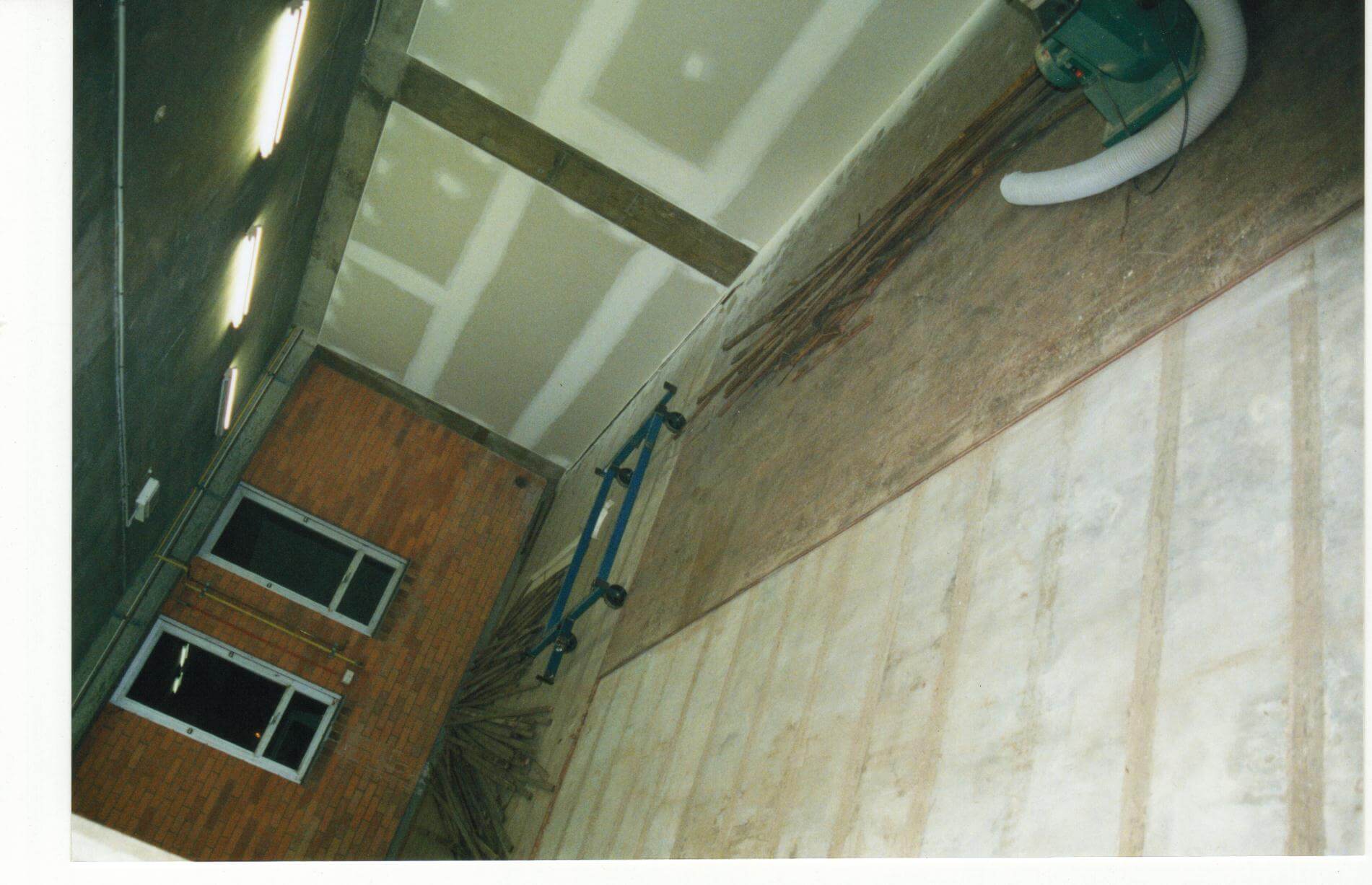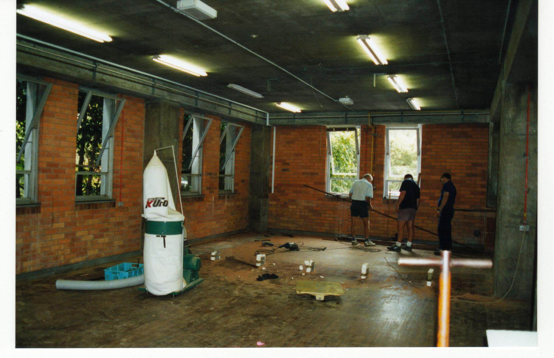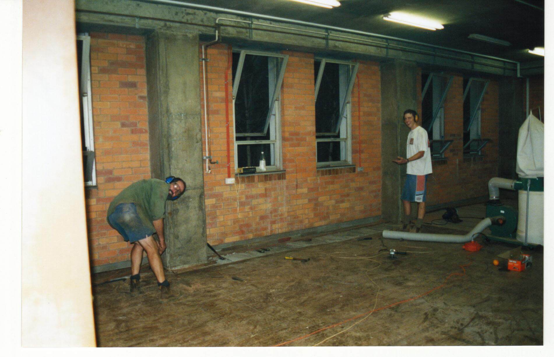 The start of the reincarnation of the red hardwood floor from unappreciated workshop surface to polished display floor in a refurbished house. Reduce, reuse, recycle!