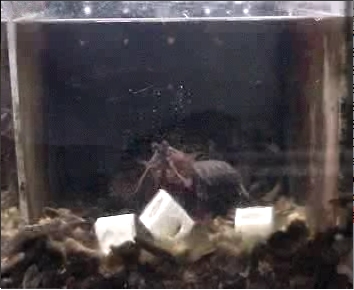 Video by Sonja Kleinlogel. An O. scyllarus is trained to grab a left-hand circular polarised feeding cube and not the two